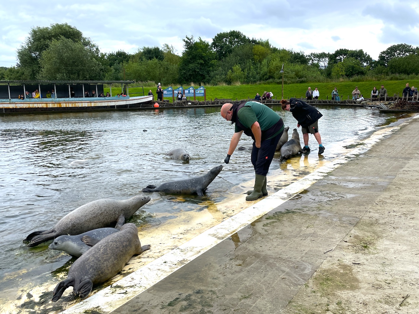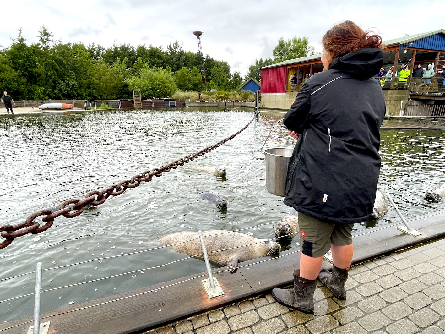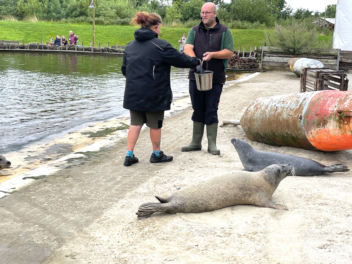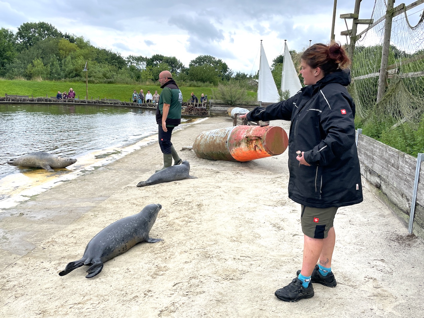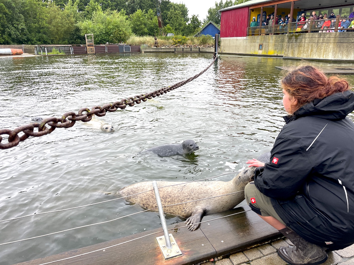 Trotz grauer Wetterprognosen wurde unser Seehund-Tag am heutigen Sonntag ein echtes Highlight im Westküstenpark! Bereits am Vormittag war der NDR bei uns zu Gast und begleitete unsere drei Seehund-Babys mit der Kamera. Heute Abend, um 19.30 Uhr, findet die Ausstrahlung im SH-Magazin statt. Im Fokus standen dabei nicht nur die Tiere selbst, sondern auch ihr Alltag und die liebevolle Aufzucht hier bei uns im Park. Gemeinsam mit dem NDR fand um 11.00 Uhr die erste Seehund-Fütterung statt – als besonderes Highlight gab es eine gefrorene „Eisbombe“ aus Fisch, die bei unseren Seehunden für große Begeisterung sorgte. Trotz anhaltenden Nieselregens bis in die Mittagsstunden waren wir überrascht und erfreut über die vielen Besucher, die sich nicht vom Wetter abschrecken ließen. Zwar musste unsere kostenfreie Alpaka-Tour am Nachmittag wetterbedingt ausfallen, dafür konnten wir spontan ein zusätzliches Seehund-Training auf der Sandbank einschieben. Unsere Gäste konnten dabei live miterleben, wie das Training abläuft – ein besonderer Einblick, der sehr gut ankam. Auch an Land war einiges los: „Mr. Kurzweyl“ sorgte mit seinen kreativen Aktionen für leuchtende Kinderaugen, und beim Puppentheater war jeder Platz besetzt. Alles in allem blicken wir auf einen rundum gelungenen Tag zurück – mit vielen schönen Momenten, die wir aufgrund des Wetters gar nicht erwartet hätten. Danke an alle, die dabei waren!